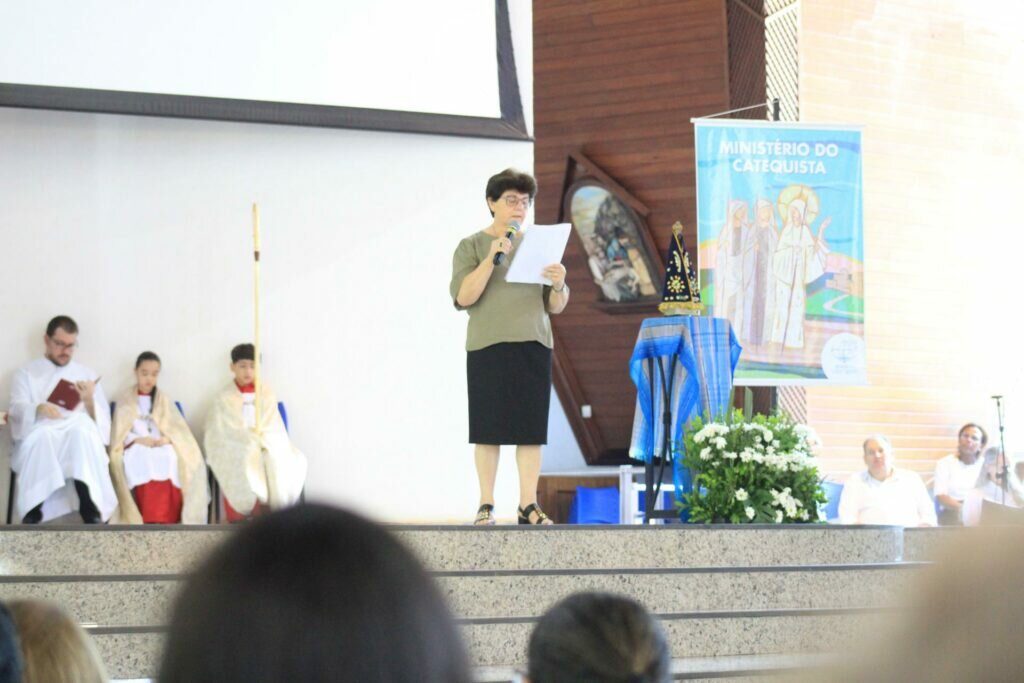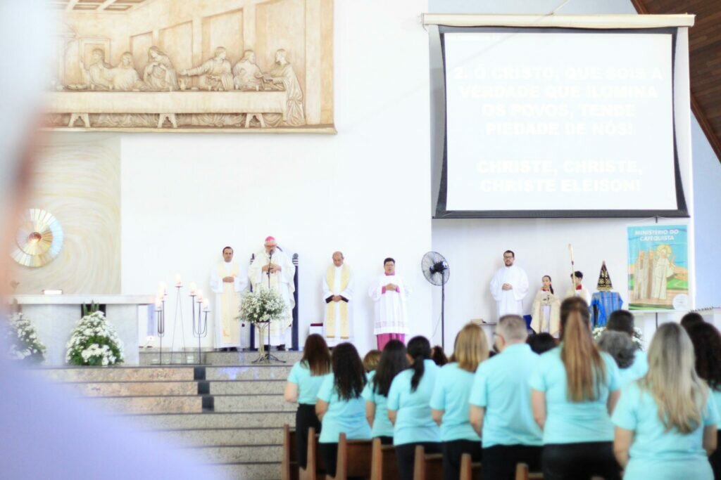 Na manhã desse último domingo, 23 de novembro, na Catedral de Londrina, foi realizada a Santa Missa presidida por dom Geremais Stenimetz onde foram instituídos catequistas de várias paróquias de nossa arquidiocese. As catequistas Dioner dos Santo Pereira e Maria Mello também foram instituídas representando assim os catequistas da Paróquia São José Operário.